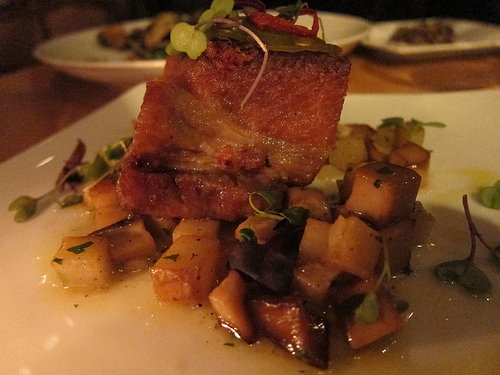 I hadn’t eaten much that day so we were ready to rock this menu. We started off with the steak tartare. The flavors were good though I was confused by the use of potato chips to scoop up the meat. I would have also preferred a finer chop on the tartare.