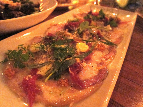 Late last year, Cliff’s Edge hired Vartan Abgaryan to head up the kitchen. While I liked the previous chef Ben Bailly’s menu, I really love Chef Vartan’s take on things. I had noticed how much more I liked the food at Public last year and that was because Chef Vartan was really making a name for himself. He brings beautiful plating and bold flavors to the menu. My favorites this evening were the tete du cochon (headcheese) and Brussels Sprouts.