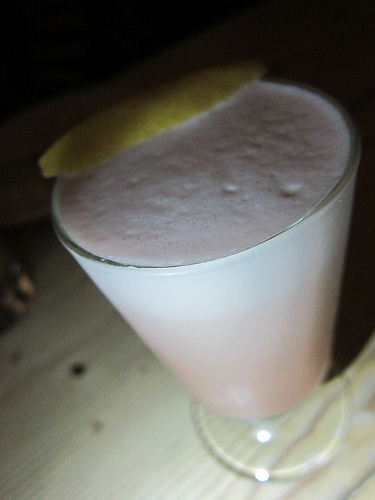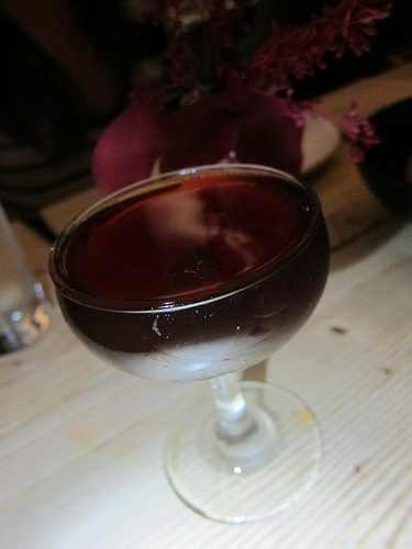 One of my favorite drinks is the 19th Century Sour (bourbon, pinot noir, lemon, demerara, egg white, bitters). I could have a couple of these in a row and still want more. Sherry, beer and champagne cocktails aren’t unheard of yet wine in my drink? What’s that about? I actually thought the Pinot gave the cocktail a nice edge on what would have been a fairly standard whiskey sour (with the richer demerara).