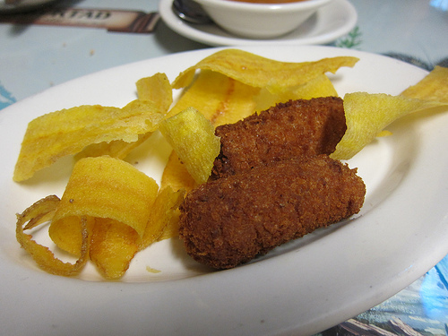 We started off with a couple of croquettas which were all right. Although fried well, I didn’t think they had much flavor despite being essentially mushy ham fingers (think fish fingers but ham). There was a garlic dipping sauce that oddly wasn’t that garlic-y. It was meant more for the fried plantain chips anyway.