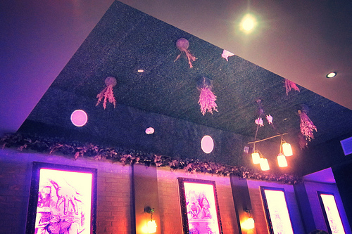 I didn’t expect much even though I was really excited about the Alice in Wonderland theme. I loved the book and had just seen the ballet a few months back. The cocktail list wasn’t half bad, minus the typos. There’s usually at least one Alice themed cocktail though the Mad Hatter (Vanilla vodka, Bailey’s, raspberry, pineapple, cranberry, lime) sounded just awful to me. Training wheels, right? Perhaps you have to lure people down the rabbit hole…
