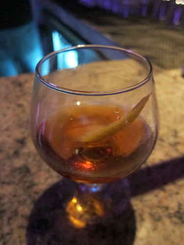It may have been obvious to bartender Niko Novick I wasn’t the usual clientele for this bar. Maybe because I was talking about judging a cocktail contest in a few weeks at WSWA (Wine & Spirits Wholesalers of America) but I was feeling mellow and wasn’t really engaging in my usual brand of bartender chat. I had already surveyed the cocktails list and didn’t think much of the back bar. I went for something simple then for my first drink, I decided on the Whistler’s Sip (whiskey, falernum, cherry bitters). It’s a bit hard to see but the garnish was a bit on the thicker side with pith showing. I’d probably recommend the bar investing in Y-peelers. Otherwise, the drink was solid.