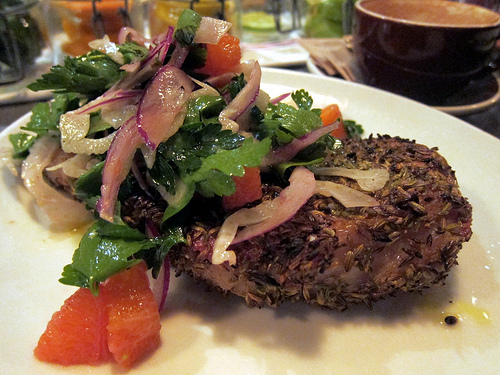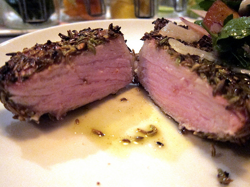 Although I had eaten dinner earlier, I couldn’t resist sharing a late of pasta and my favorite pork at Sotto. We got this whole wheat and peas pasta with plenty of cheese. I really enjoy whole wheat pasta and don’t see it often enough on menus. It was so good, we convinced the people next to us to order it.