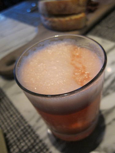 My friend had the All Dolled Up (Karlsson’s vodka, Campari, vanilla rhubarb shrub, grapefruit, lemon, egg white). It’s interesting to me and hard not to think of it when I read the cocktail list to think of Jaymee. She favored certain spirits like Karlsson’s, Casa Noble, Bulleit which all show up on this menu. I wonder at what point is this list really Kyle’s or is he trying to use up the stock left by his predecessor? In any case, my friend did like her drink. The Campari balances the tartness of the other ingredients. It’s basically a wonderful vodka sour. It’s fairly radical for a vodka drinker and I hope this drink will hook them into trying new cocktails.