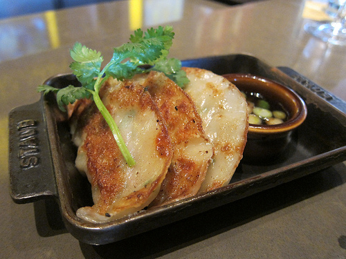 Potstickers were recommended and who am I to turn down a dumpling? Especially since it arrived in a Staub pan. I did find the half circle a bit hard to dip into the small container but you can always douse the potstickers with soy.