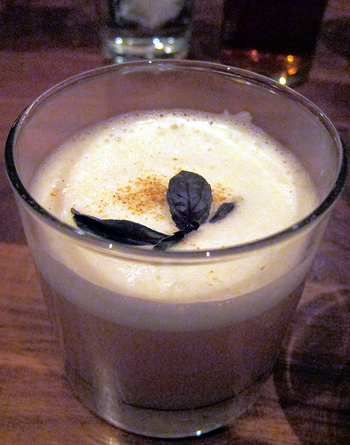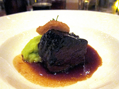 Deschutes produces one of my favorite porters and I was glad to try the short ribs braised in Deschutes Black Butte. I half-expected this dish would be paired with the porter but that would be too easy. Russell went with Aect Urbock and we also had the Spirit Grocer’s Soiree (Templeton rye, smoked dark muscovado simple syrup, Fee Brother’s old fashioned bitters, Guinness foam).