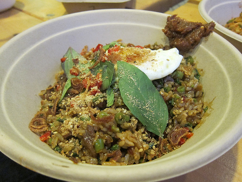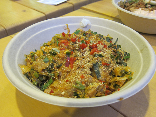 My friends were going gaga over the Beefy T bowl. I finally figured out why everyone loved these bowls so much. They are the sort of meals I’d make myself at home after a bar hop. It reminded me of a friend of mine who would raid her fridge and pour any leftover banchan, gochuchang, sesame oil and anything else that caught her eye into a big bowl of rice. I just call my version “fried rice.” My friend rice is never quite the same but it is the same “fridge clean-up” idea.