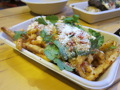 I was invited to friends and family night so I got to share a bunch of dishes. We sat outside at the communal tables, overseen by the brightly painted kiddie rides. First up was the ooey gooey fries. I didn’t have these before and could see the appeal. They were bit like gravy fries or poutine. They were definitely addicting and worse yet, even crave-able when cold. We could not stop eating these.