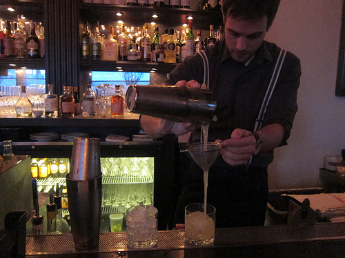 A classy place like Crossroads need some classy bartender outfits. I love the suspenders. Here’s Jeremy carefully double straining a cocktail. Hashtag hotbartender.