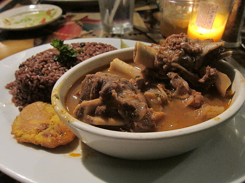I didn’t care much for the rice which seemed to be a bit on the greasier side but it was a good foil for both the shrimp and goat. The tostones (fried green plantains) were on the drier side.