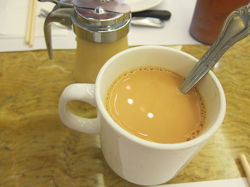 So about that trip to Hong Kong when I was 10. Every morning, my great-grandfather would arrive at the crack of dawn to my grandparents’ house where I was staying and drag me to the markets. We would buy fresh fish, pork, vegetables and anything else that caught my great-grandpa’s eye. At the end of the shopping excursion, he’d take me to breakfast. I didn’t call it Chinese breakfast because that’s what I called dim sum. Instead, he took me to coffee shops with Western-style breakfasts but with a Chinese sensibility. My favorite breakfast was macaroni soup with spam and peas. If I was particularly hungry, I’d get a fried egg and toast. We always had milk tea.