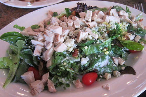 I ordered the chop chop salad and was glad it wasn’t iceberg lettuce. There was a crazy amount of chicken and I ended up not being able to finish my food. Then again, we did have that dip, tempura green beans, steak medallions and mushrooms, too. I’m fairly certain we should have gotten a table but we like eating meals at bars.