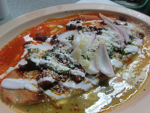 We also got the pastor but as a “super huarache” which just means it’s bigger. And we had a choice of sauces. I opted for both red and green sauces. A regular sized huarache would be good for one but try fighting two others for the super huarache. I suggest getting your own.