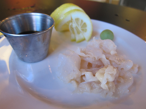 The best part about watching the geoduck cleaning, besides the oh-so-innocent naughtiness, was trying something they called the “foie gras of the sea.” It was rich and smooth, probably a little less dense than ankimo (monkfish liver) which is what I used to think of when people say “foie gras of the sea.”