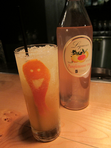 When I trust a bartender, I usually let them make me whatever they want but I spotted the Zwack on Up and knew I had to try it. I’m currently in love with the Combier Pamplemousse Rose and really enjoy the pink grapefruit liqueur in cocktails. This drink came with the best garnish. As Kevin gave it to me, he said “say hello to my little friend.” Aw, so cute. If you look closely, you can see the legs of the octopus creature.