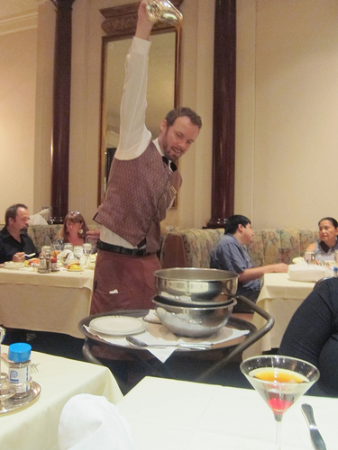 I got a meal that included salad, prime rib, a lobster tail and dessert. Lawry’s is famous for their spinning salad where a server will toss the salad by spinning the bowl.