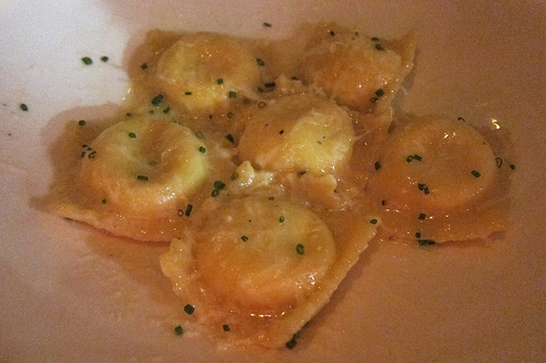 The pasta dough was tender and the sweet corn filling was just sweet enough without seeming like a dessert. Although we didn’t order another plate, we would order this dish again.