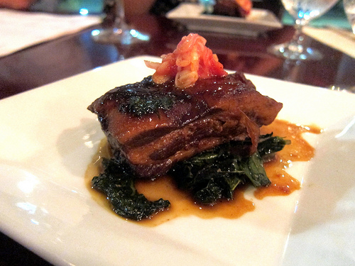 Chef Jason mentioned being Asian meant enjoying broth-y rice dishes. And I knew exactly what he was talking about. It reminds me of the times my grandmother and mother would add hot water to the rice pot to enjoy the last crispy bits. The Japanese has a breakfast with this concept except they use hot tea and eat the “porridge” with pickles. Thinking about this concept, it’s no surprise the Alaskan black cod worked so well in the Meyer lemon broth and half-browned rice. All I needed was a spoon.
