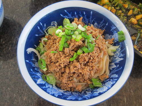 We also noticed the noodles in all three bowls were the same. They were al dente and great but I wished each bowl had different noodles. For instance, the beef noodles would be great with hand torn noodles. And perhaps the minced meat could go with a slippery noodle, maybe mung bean.