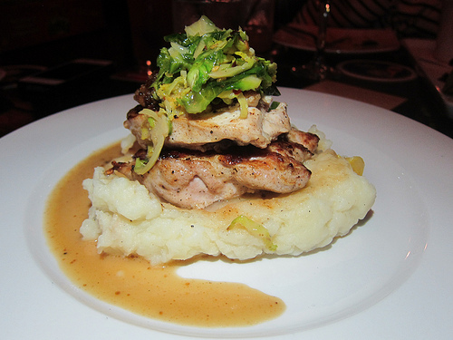 A beautiful comforting dish is roast chicken. The Morrison serves there’s on top of mashed potatoes and topped with Brussels sprouts and bacon jam. I had a bite and the chicken was very juicy.