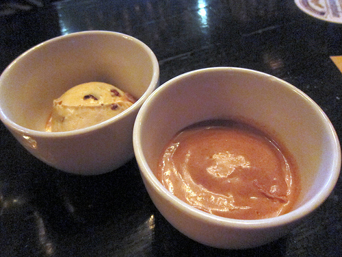 We got a bread pudding for the table but Steve also brought out a couple of his house-made boozy ice creams; a bourbon and Luxardo and Scotch and chocolate. I liked both but leaned towards the Scotch and chocolate. That surprised me a bit since I never really ate chocolate ice cream growing up– I was much more a nutty or fruity ice cream fan.