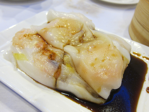 She also prefers BBQ pork rice rolls (cheung fun) but I like shrimp. The cart lady didn’t have BBQ pork so I won this round. At first I was bewildered why the rolls were so short but the shrimp were enormous so that made up for it.