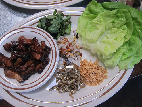 A great dish to share as an appetizer would be the house-cured Hunan bacon. Served with Bibb lettuce, rice noodles and anchovies, you can make lettuce wraps that seems at once innovative and familiar. Considering I used to eat my pork chops wrapped in lettuce, I found this a wonderful idea.