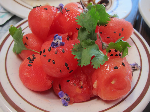 Think of the watermelon as a palate cleanser in between meaty, porky ribs.