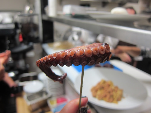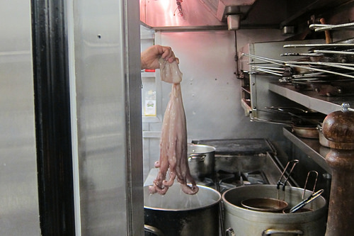 Before we knew it, the octopus was done. Here’s Chef Christian seasoning every bit of it.