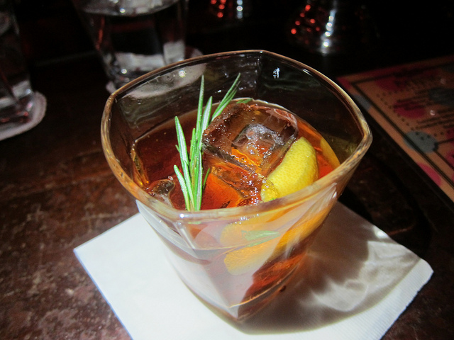 Big Shot – Pierre Ferrand Cognac, Amaro Averna, Rosemary, Flamed Chartreuse