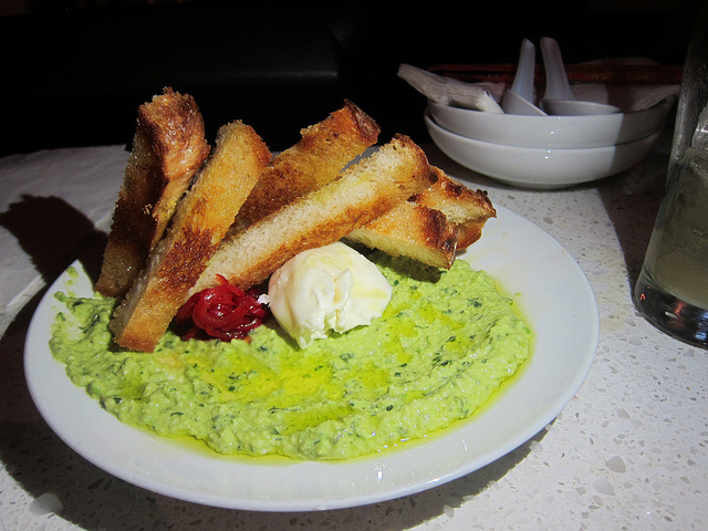 Upgrading your usual hummus has never been so easy. We loved the Playground’s take on mashed fava beans and spring peas. And to make it even more of a rock star dish, top it with burrata.