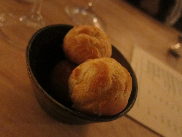 We started out with complimentary gougeres and the light cheese puffs were great.