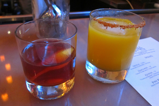 My friend had the Sancho Reyes. The Ancho Reyes chili liqueur is popping up all menus in LA. I love the subtly sweet and spicy liqueur. With tequila, mango and everyone’s favorite spice garnish, tanjin, the flavors were so familiar.
