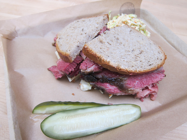 My favorite pastrami is at Langer’s but Wexler’s serves up more than a decent sandwich. With crunchy pickles, a good slaw and the MacArthur Park; pastrami with Swiss cheese, Russian dressing, slaw, the trek to the actual MacArthur Park seemed more daunting. I found the flavorful tender pastrami very good. I added grainy brown mustard to my sandwich and it was perfect. I’d like to try the Reuben and egg salad sandwich (the Ruskie) next time. Now if only they served matzoh ball soup too!