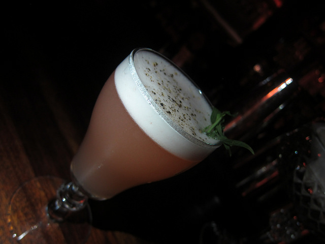 The bartender assured me the Nightlight wouldn’t be too sweet. Unfortunately for my neat whiskey loving heart, it was a bit sweet. I should have taken into consideration of the rum and the tarragon-fennel syrup. With either a touch more Aperol or less syrup, this would have been the perfect sour. However, others in my party liked my drink (just as I liked theirs more). It was definitely cocktail envy time.