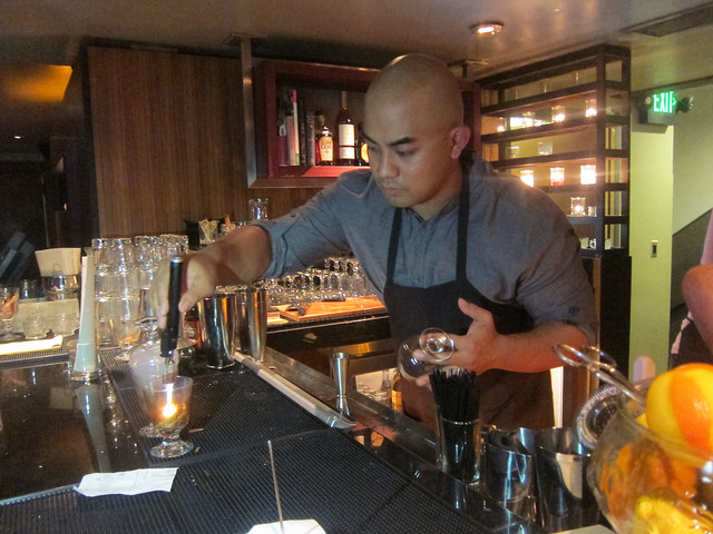You’re encouraged to order from the server but are allowed to gather around the small bar to watch the magic.