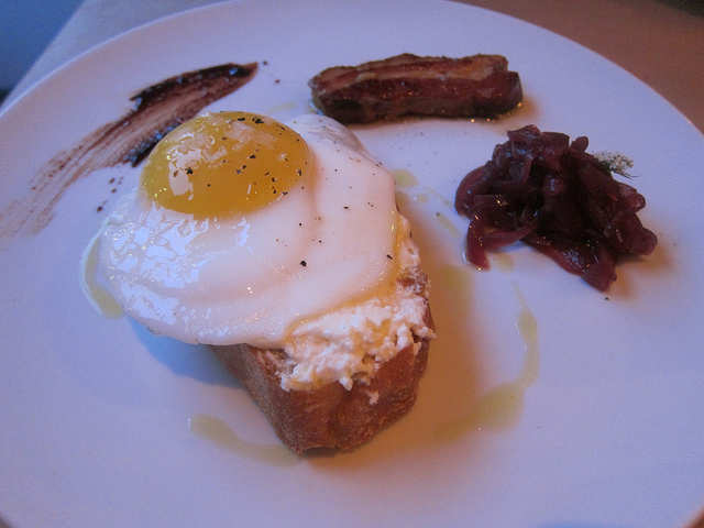 I thought the ricotta crostini was very much like breakfast with braised bacon and a duck egg. And your “toast” was the crostini served with house-made ricotta.