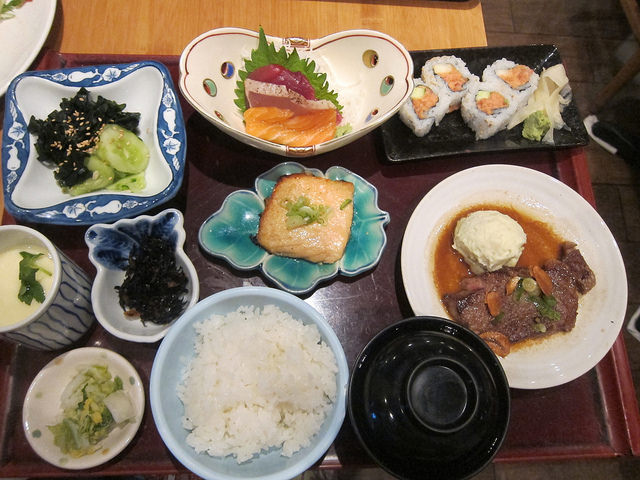 Being the type of person who likes to try lots of different things, getting the bento was the way to go for me. Not only did I get a few slices of sashimi but I also got a tasty bit of steak, cooked salmon, spicy salmon roll, pickles, rice, soup and my favorite, seafood chawanmushi. The steamed egg custard had bits of seafood which made it more luxurious than the standard chawanmushi.