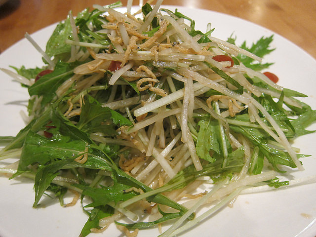 My friend ordered the chirashi bowl. I did look on with envy over how much fish she got including a scoop of spicy tuna but I was satisfied with my bento. I also had ordered the mizuna salad to share which comes with tiny fried fish (look out vegetarians!).