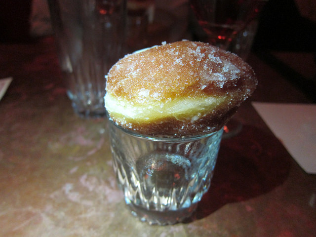 And just when we thought we saw the last of the 1941 J & B, it came around again with the honey doughnuts stuffed with banana cream. Such a decadent and luxurious way to end the evening.