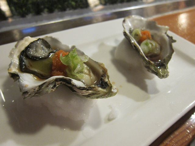 Then we had oysters two ways. I struggle to say if raw or fried oysters are my favorite. I settle for saying I just love oysters of any kind or any manner of cooking. These were fresh from Japan.