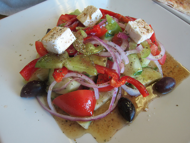 Instead of the usual Greek salad, we went with the horiatiki which is just like the Greek except there’s no lettuce. It’s a flavor bomb of umami including olives, Greek feta and crunchy vegetables. I enjoyed the house Dimitra’s dressing.
