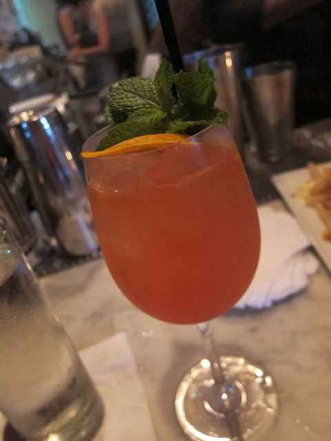 Staying in that same light and refreshing vein, we have the Lambretta No. 2. Instead of sparkling wine or champagne, I liked that this Campari-based drink was topped with tonic water. It made the drink fizzy without dominating the delicate Lillet rose also in the drink.