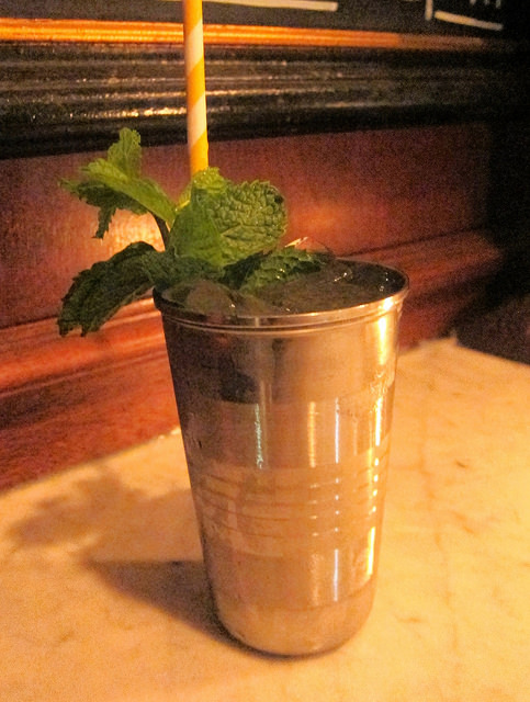 Are horse race drinks appropriate year-round? If they were (and even if they’re not), get the Kentucky Belle. It’s like a classic julep but with extra minty flavor from the aloe liqueur Chareau. Eyeball that pretty silver julep cup, won’t you?