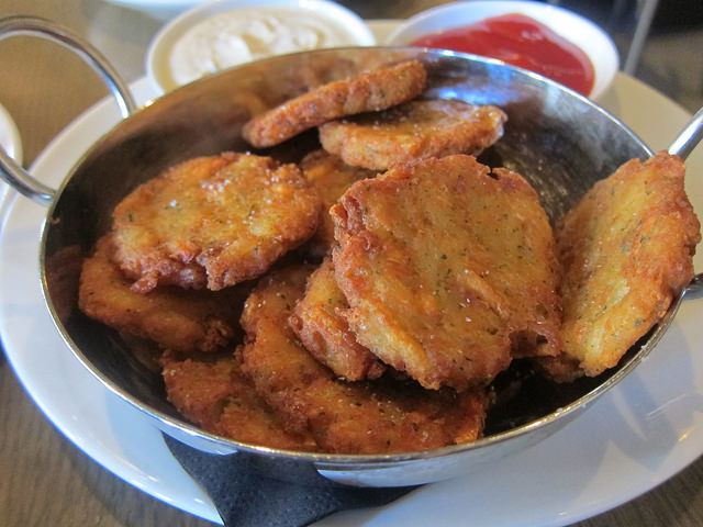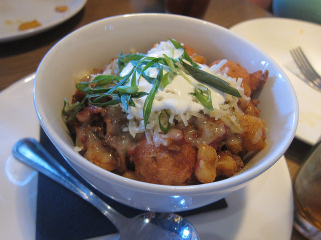 The smashed tater tots were little frisbees of potato-y goodness. Served with roasted garlic ranch (ooh, fancy), these were handy for snacking through out the meal. After the hush puppies though, I started wondering what else I could put chili on. Yes… maybe next time I’ll get tater tots with chili!