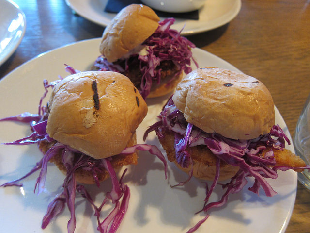 For happy hour, there are sliders (schnitzel schlyydaaz). You can choose between chicken, mushroom or pork. We opted to get one of each. I preferred the more traditional pork schnitzel.