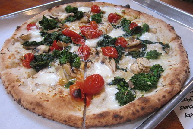 For veggie or sauceless or both lovers, try the veggie pizza, vedura. Vedura which means vegetable in Italian (natch) had all the good stuff including those great cherry tomatoes, broccoli rabe, mushrooms and loads of garlic. It was sauceless and a great white pizza.