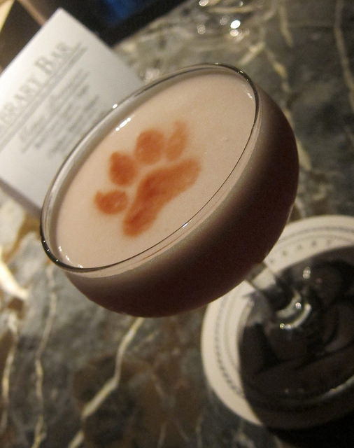 Gosh, I love egg white sours! This tequila one reminded me of a Clover Club. Great stencil design of a wolf paw for that extra nice finish.
