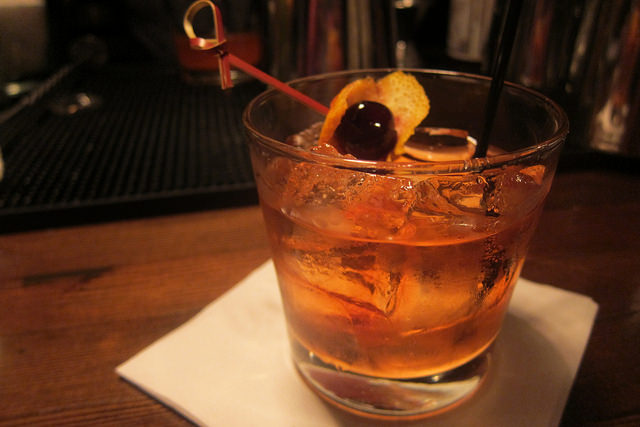 The Love Song has a list of classic and original cocktails that they have named after bands, musicians or writers. I ordered the Elliott Smith which is their Sazarac. Using Old Overholt rye, sugar, Regan’s orange bitters, Peychaud’s bitters and Mata Hari absinthe, the ingredients looked more or less right– generally it’s Peychaud’s and Angostura bitters but I was willing to give Regan’s a shot even if famed Jeffrey Morgenthaler is against orange bitters in Sazaracs. But then I was worried when I received the cocktail on the rocks. What was the point of the absinthe rinse then? It was completely lost with all that ice. A Sazarac should be served strained into a chilled glass. Some people like to drop in the lemon twist after it’s been expressed but I prefer it thrown away (as does Jeffrey). It most certainly does not get garnished with a cherry.