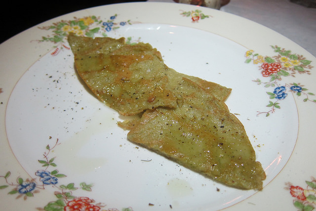 I wasn’t sure what to expect when we ordered the socca. Chickpea cakes sounded similar to the chickpea “fries” that were popular a few years ago. Chef Kris rolls out his own version with fennel pollen and black pepper. Simple but delicious.